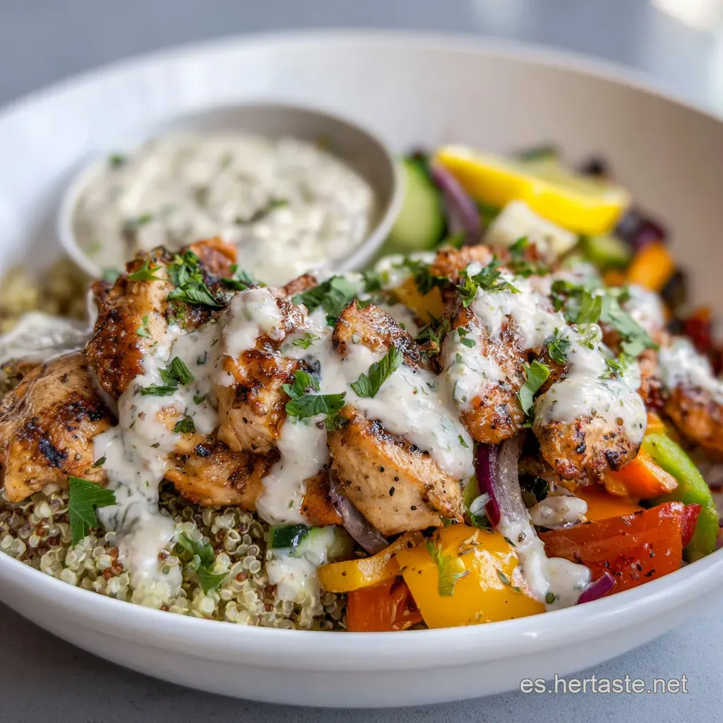 El error más grande es montar el bol completo antes de guardar. Si haces esto, la quinoa absorberá el aderezo y el líquido de los vegetales, y todo se pondrá blando. Guarda el pollo y los vegetales juntos en un recipiente hermético y la quinoa por separado.