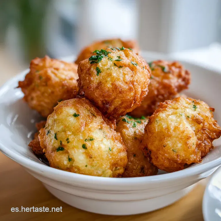 Para la fritura, una sartén honda o un cazo pequeño te ayudarán a que los buñuelos floten libremente sin tocar el fondo. Y, por supuesto, una rejilla de metal para dejarlos reposar tras el aceite es mucho mejor que el papel de cocina, ya que evita que el vapor de la base ablande la costra crujiente. Si te apasionan los bocados fritos y crujientes, tienes que probar estas Bolitas de Patata receta que utilizan una técnica similar de fritura de precisión.