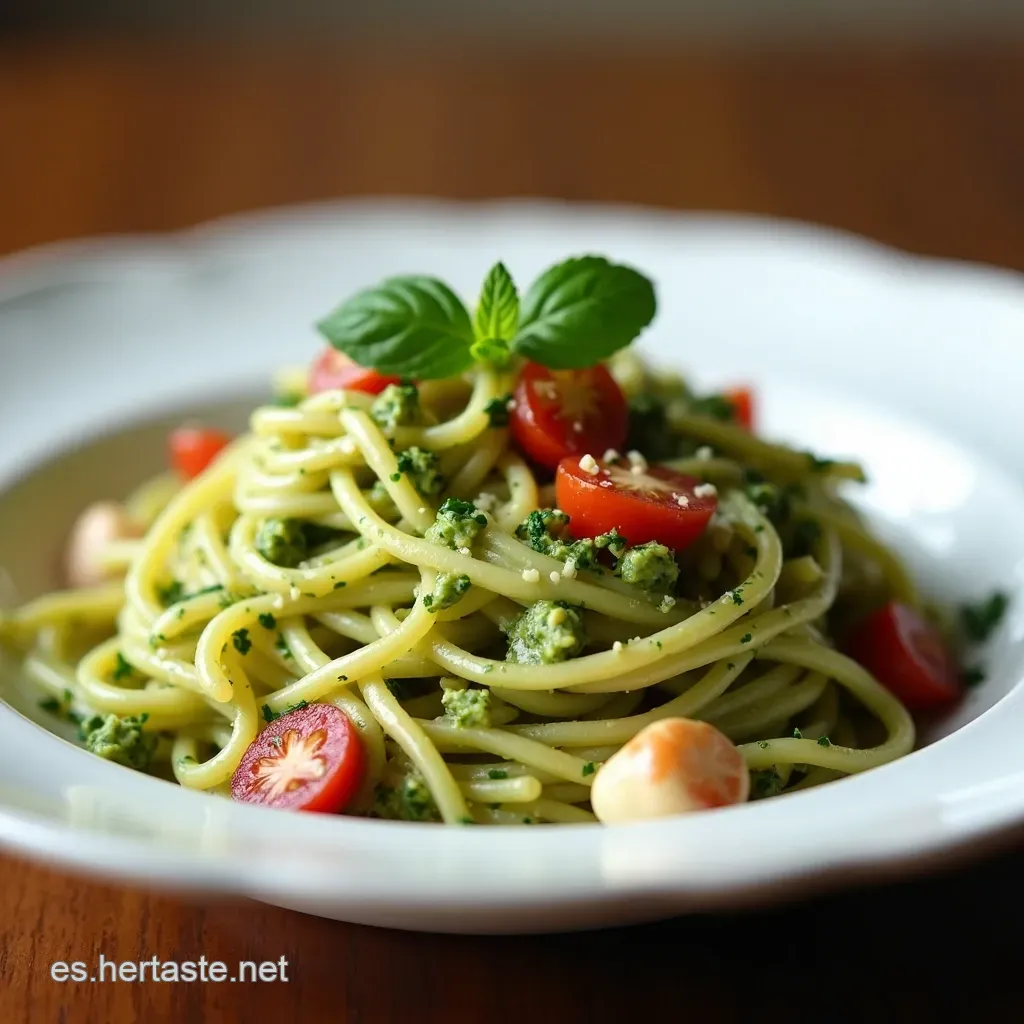 Imagínate la pasta, bien fresquita, bañada en esa salsa verde vibrante... ¡Un festival de sabor en cada bocado!