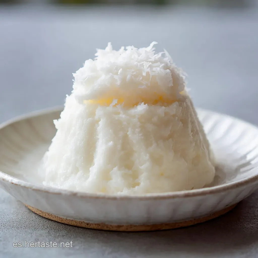 La presentación es la mitad de la magia. A mí me encanta servir esta nube helada de coco en cuencos de cristal previamente enfriados. Puedes usar una cuchara de helado mojada en agua caliente para sacar bolas perfectas que revelen todas las escamas de coco en su interior.