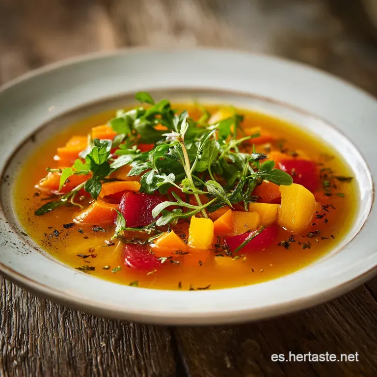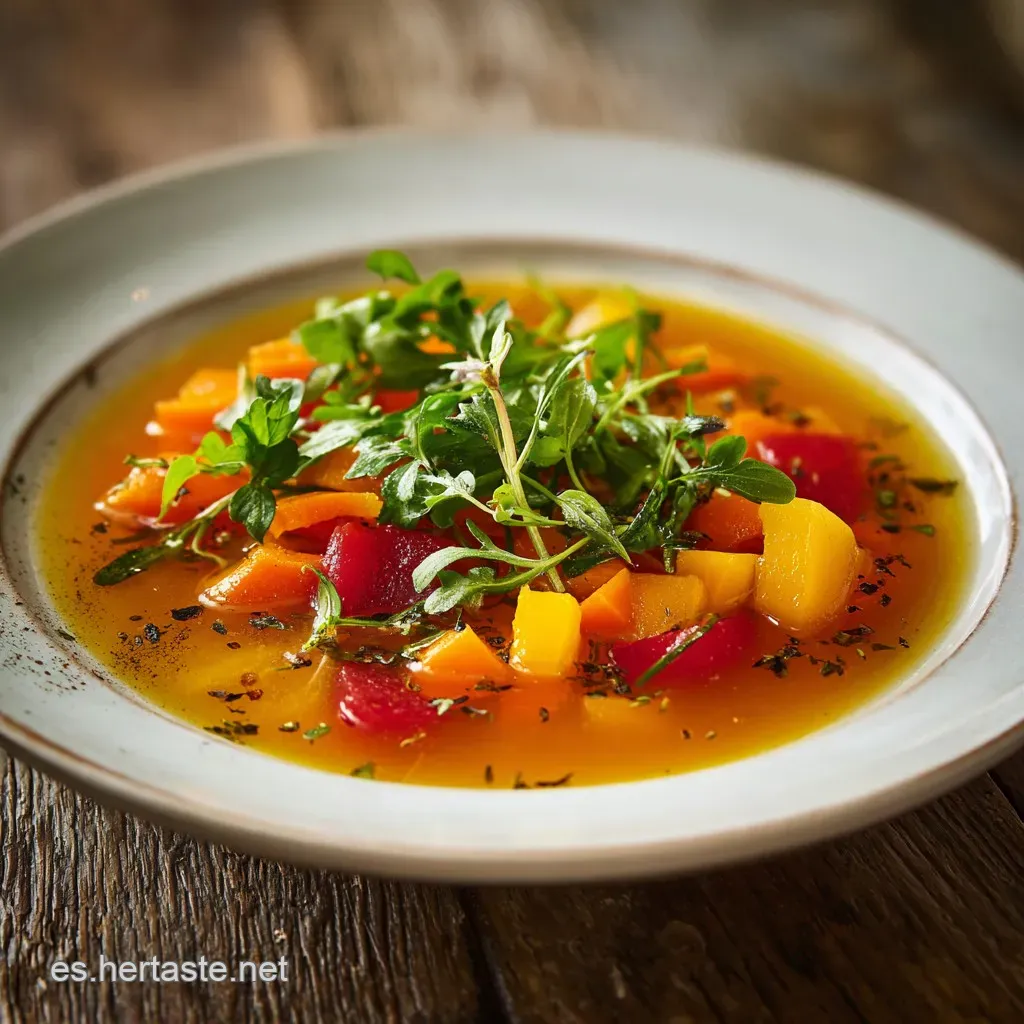 - Sabor/Textura: Caldo vibrante con vegetales tiernos